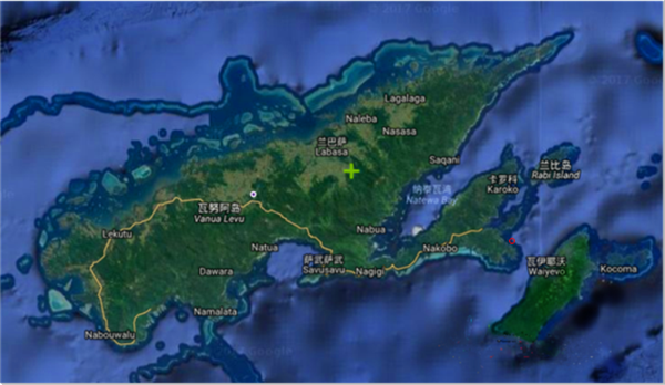 瓦努阿岛Vanua,西南太平洋斐济第二大岛,面积5,587.1平方公里(2,137平方哩)。濒临南太平洋的科罗(Koro)海。位于维提岛东北64公里(40哩)。位于16°35′S 179°11′E。长180公里(110英里),宽50公里(31英里)。