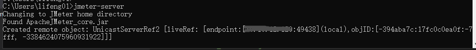 cmd输入jmeter-server启动服务(如果运行命令起不来,那肯定是jmeter的环境变量配置错误,记得去检查下)。