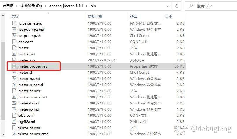 jmeter的安装路径,并在bin目录下找到jmeter.properties。