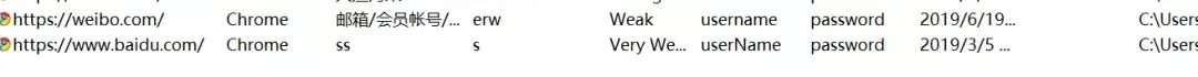 把这个文件复制到chrome的User Data\Default\里,替换掉chrome的密码保存文件,再执行下密码导出工具,密码列表就导出来了。下图,就是我在浏览器里保存的密码。