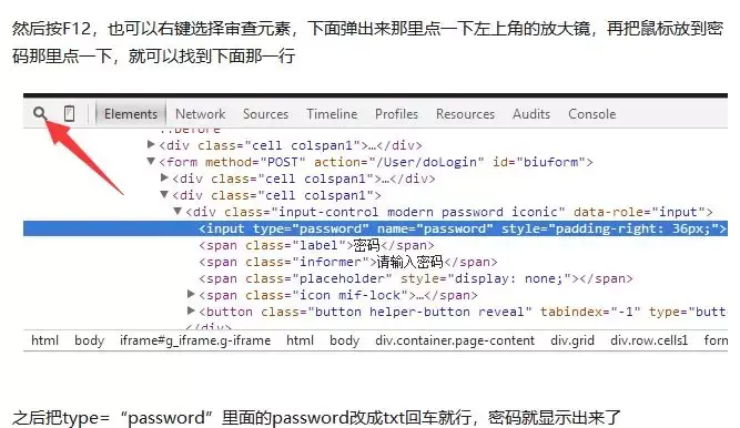 用开发者模式、修改网页编码、还只是在填充框里看见密码,这不科学啊,作为一个业余测试工程师,我这是在我老婆的电脑上,我应该模仿她的操作习惯!浏览器的开发者模式、修改编码这是一个文科生可以理解的概念吗?知乎大神也不行啊。