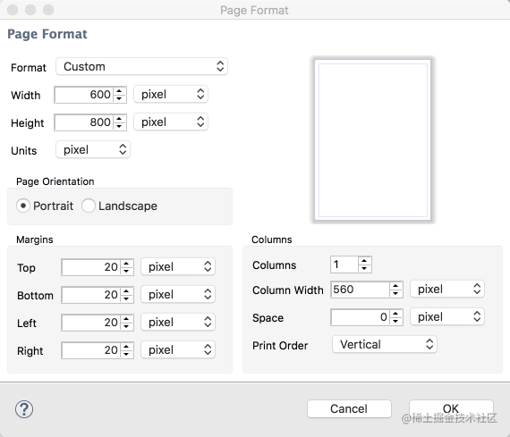 在页面的全局设置中可以设置页面的大小,边距,尺寸单位,页面方向等。