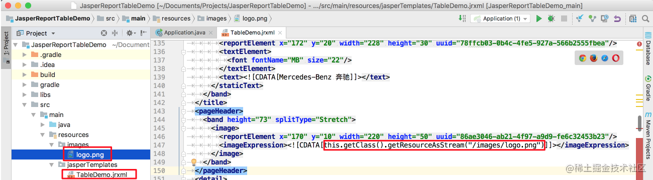 在 Jasper Studio 中添加一个 Image 组件,正确的设置一个图片的路径,点击预览就可以看到显示出来的图片了。但是细心的同学会发现在 .jrxml 模板文件中图片的路径是一个绝对路径,这在实际生产过程中肯定是不行的。