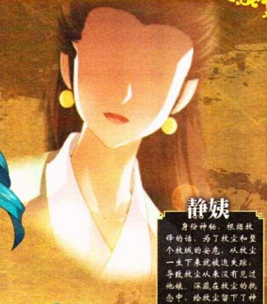 清衍静的养女,牧尘的义姐。因受到浮屠族的迫害,以致记忆残缺流落到北苍大陆,后加入北苍学院任北苍灵院长老。专注于修炼灵阵,精通各种类型的灵阵,还修炼了修炼大浮屠诀阴卷,在北苍灵院时指点过牧尘灵阵知识,得知牧尘身份后将大浮屠决阴卷传授给牧尘。后离开北苍灵院去寻找清衍静,却被顾狮皇囚禁在碧灵岛,被牧尘救出后就一直跟随在牧尘身边。牧尘救出清衍静后便一直陪伴在清衍静左右。