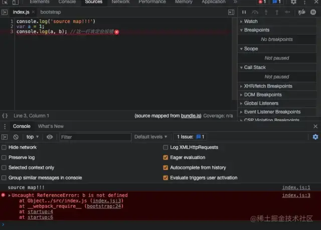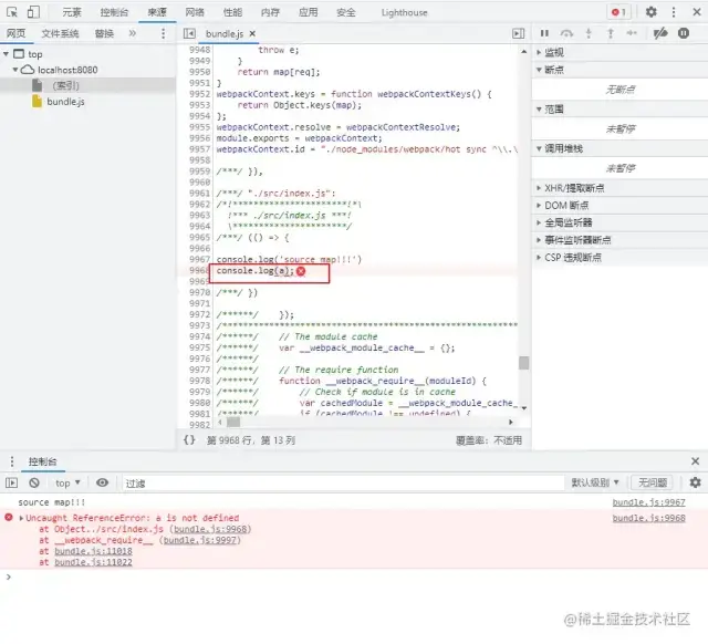 。结合上面的例子,即使打包过后的代码,也可以找到具体的报错位置,这使得我们