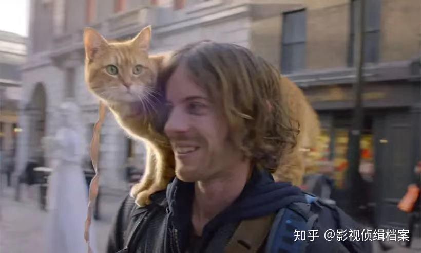 片中萌化了观众的大橘猫鲍勃于今年6月份因为车祸去世了,所以这部作品更像是对鲍勃的缅怀,第一部鲍勃是现实中的鲍勃本勃,第二部中的鲍勃是找的一只跟鲍勃很像的喵星人出演。虽然外貌和身形都有一丢丢差距,跟主角James的互动也欠缺那么一点情感上的共鸣,但不妨碍人猫情深这个暖心的主题营造。