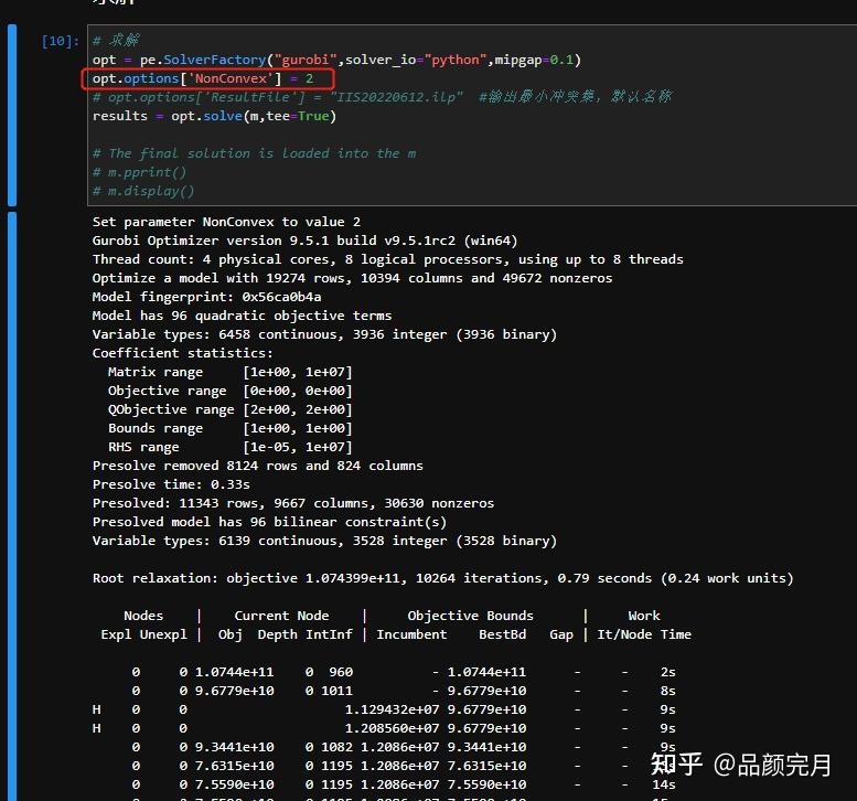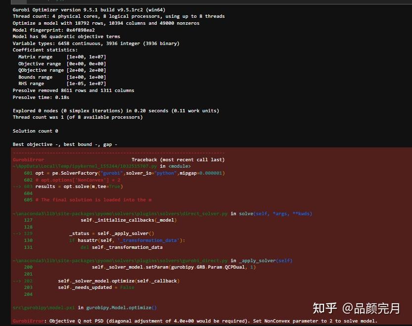 用pyomo建模语言描述的优化模型为二次(约束条件或者目标函数为二次的),调用gurobi没有做参数设置,求解时报错如下: