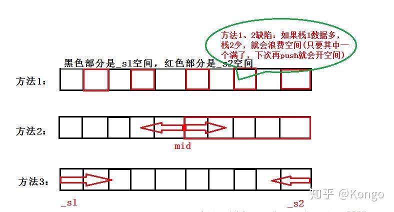 方法1:利用奇偶位,分别存储栈1和栈2的数据;