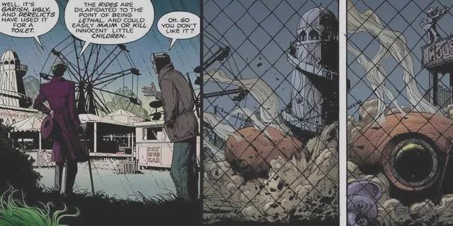 而这个游乐园,似乎也致敬了漫画《致命玩笑》里小丑游荡的废弃游乐场,当然我知道不是同一个。