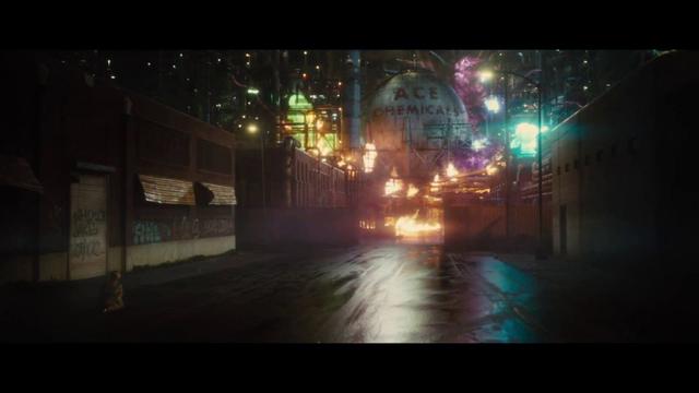 哈莉在影片开始炸掉的实验工厂,也正是在《自杀小队》中,哈莉和小丑成为恋人的地方,哈莉也就是在那,被漂白了皮肤。