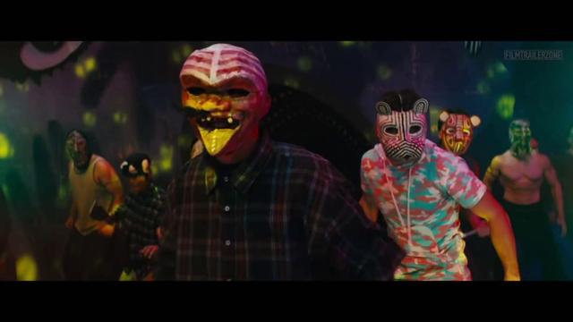 在影片中,小丑和蝙蝠侠因为剧情需要的消失,让黑面具成为了哥谭市的邪恶教父,几乎等于就是和小丑平起平坐了,所以在影片最后,他能召集很多黑势力一起去干掉哈莉他们。