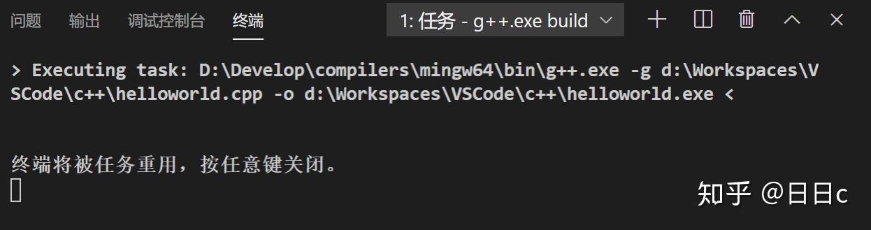 - args 数组指定将传递给 g++ 的命令行参数。必须按照编译器期望的顺序指定这些参数。此任务告诉 g++ 获取活动文件(${file}),对其进行编译,并在当前目录(${fileDirname})中创建一个与活动文件同名但以 .exe 为扩展名(${fileBasenameNoExtension}.exe)的可执行文件,如 helloworld.exe 。可使用"${workspaceFolder}\\*.cpp"来替换 ${file},这将生成当前文件夹中的所有 .cpp 文件