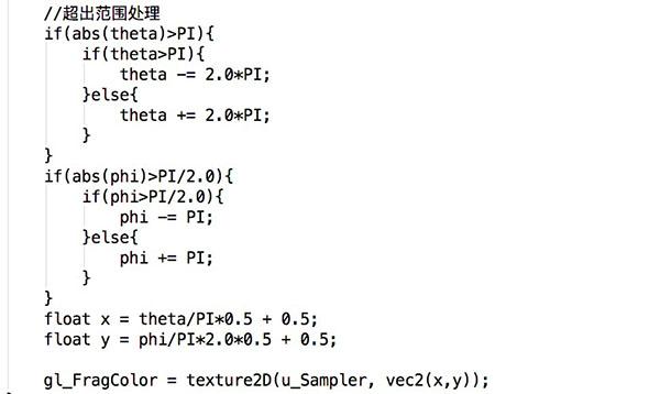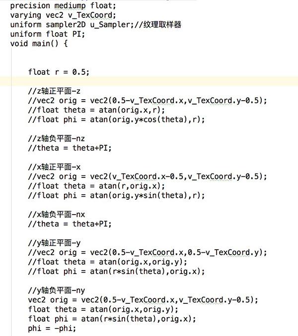 虽然上边的核心代码很简单每个面大概三四行代码的样子,其实球型全景图到立方体全景图的转换涉及到好几个坐标系的相互映射,稍不小心就会出错,如下: