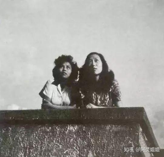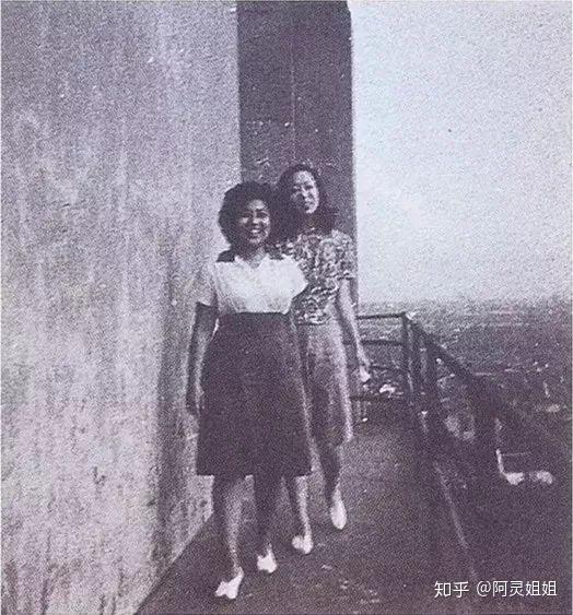1944年,张爱玲和炎樱合影在屋顶洋台上。
