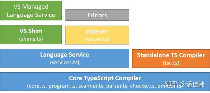 关于这个,Typescript 的解析器能力已经帮我们把整体架构好了,并不是刀耕火种从 AST 来撸代码。这是架构图(源自 Typescript 的 GitHub wiki)