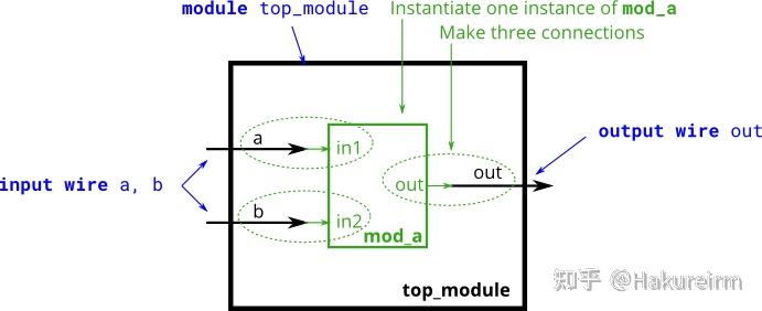 题目描述 wire是Verilog的关键字,用于表征信号类型的,其含义是线网,wire可理解为物理连线,但又有所不同,因为verilog中的wire是有方向的,例如设计一模块,模块名命名为top_module,输入信号名为in,输出信号名为out,使in与out直连,如下图所示: