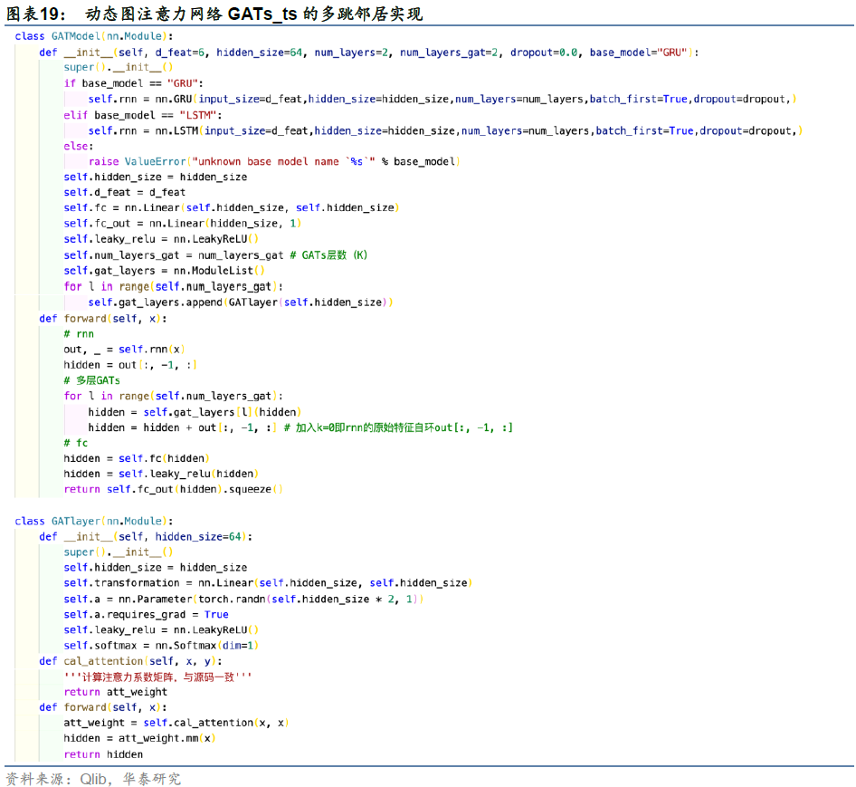 3. 第三部分关注GATs_ts在微软Qlib平台的具体实现方式。我们将详细介绍GATs_ts的选股思路和Qlib代码,随后在GATs_ts基础上,实现多跳邻居聚合即多层GATs_ts。