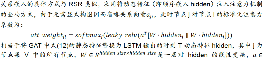图时空网络的核心思想是将循环神经网络(或卷积神经网络)与图神经网络结合,目标是学习原始数据时间域和空间域上更丰富的信息,适用于量化选股领域。关系股票排序框架(RSR)和GATs_ts都属于图时空网络范畴。RSR在顺序嵌入层采用LSTM学习股票的时间序列特征,随后对股票间的多种类型关系构建显式图,在关系嵌入层使用动态时间图卷积学习股票间的相互作用,最终预测股票收益率排序。GATs_ts与RSR类似,在动态时间图卷积模块采用GAT的全局注意力机制,无需对股票市场显式建图,而是隐式学习所有节点对中心节点的影响,再将这些信息聚合到中心节点。