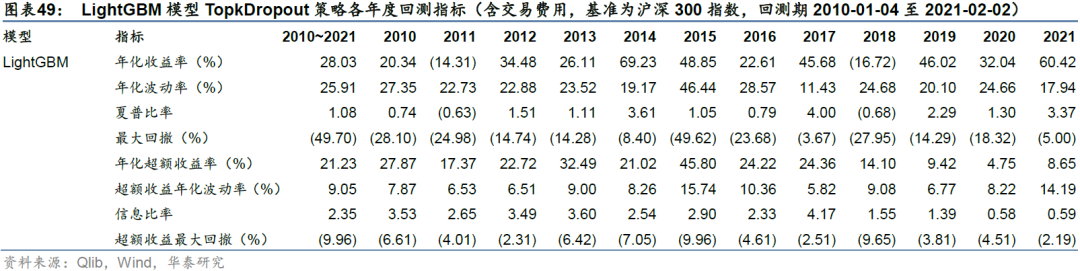 3. 策略构建:本研究直接调用Qlib中的Alpha158因子库及TopkDropOut选股策略,在沪深300成分股票池内采用日频调仓方式构建组合。模型在其它股票池、其它换仓频率、其它组合构建方式下表现如何?模型2018年后超额收益逐渐衰减,是否和因子失效有关,引入新因子能否起到改进效果?