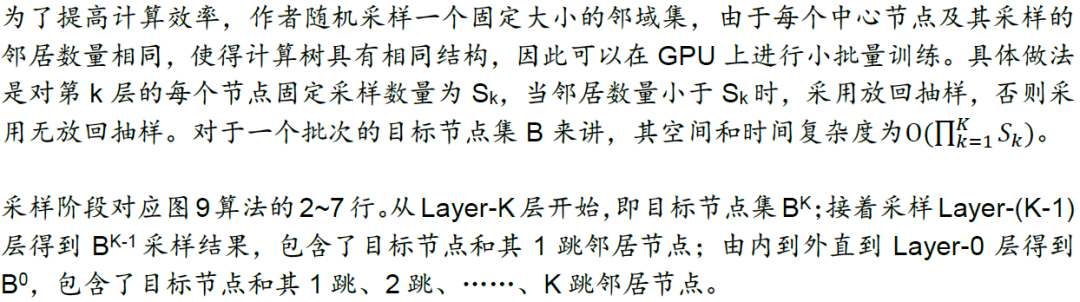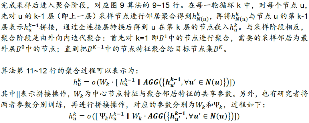 图9展示GraphSAGE小批量前向传播算法的伪代码,整体分为两部分。