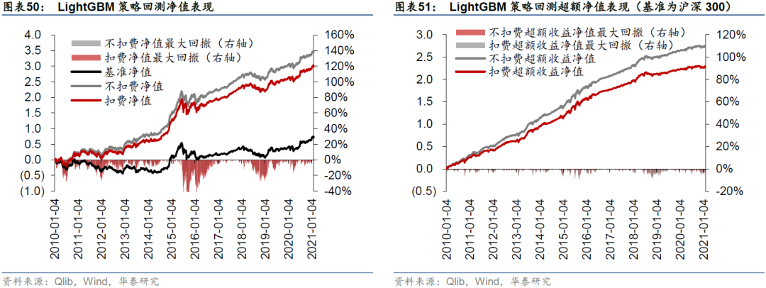 除GATs_ts和LSTM模型外,我们还测试了经典的决策树集成模型LightGBM,回测结果如下。