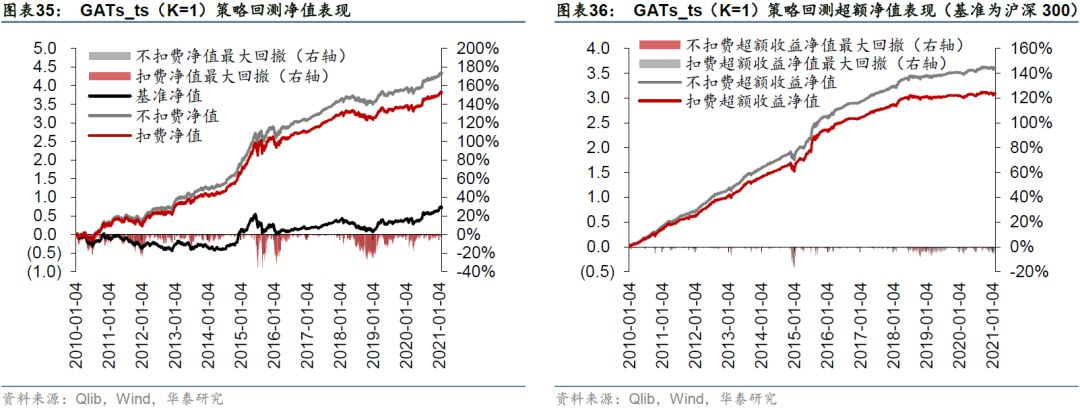 从分年度表现来看,各类型策略的超额收益表现出明显的衰减,我们认为这和模型使用的因子有关。Alpha158vwap因子库包含158个量价因子,这些因子是原始量价数据由基础运算符相连接得到的因子表达式。若传统量价出现拥挤,或者因为市场环境变化量价因子整体失效,那么GATs_ts模型也不可避免出现滑坡。GATs_ts只能解决因子合成的问题,无法解决因子失效问题。持续挖掘新Alpha因子仍是提升 Alpha策略表现的最好途径之一。