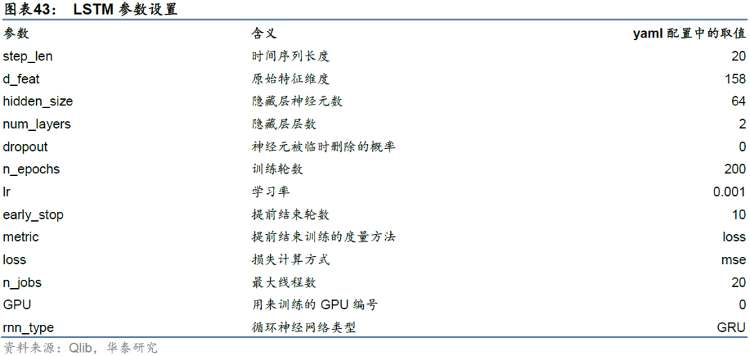 基准模型LSTM参数设置如下表所示。