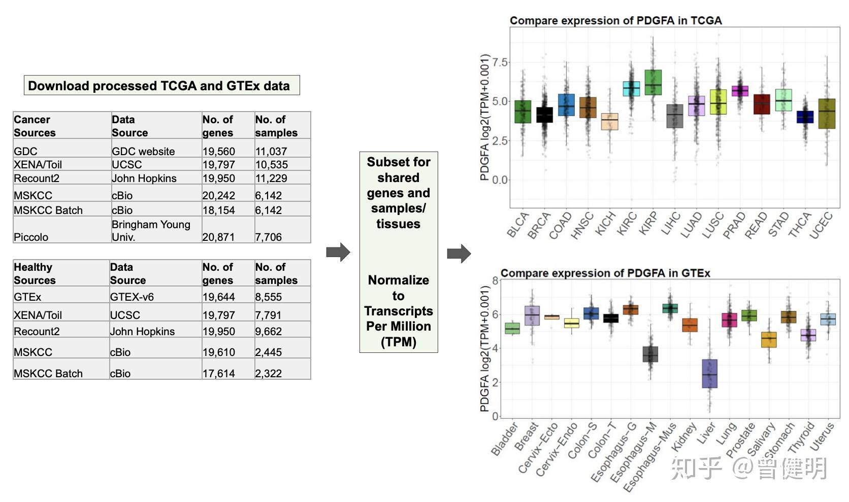 作者把这5个流程应用到TCGA和GTEX,得到10个不同组合的数据
