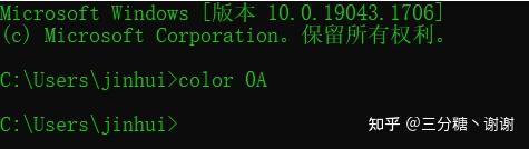 color 0A:设置前景色为黑色,背景色为淡绿色