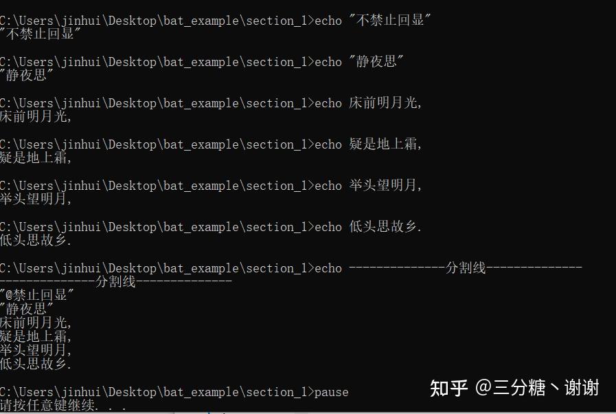 从这里可以看出,使用@来禁止命令回显,可以使控制台的输出更加的美观和可读性