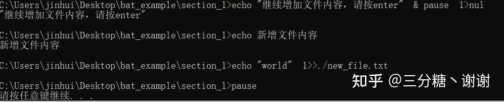 <6>echo [文件内容] >> [文件名]:新增文件内容