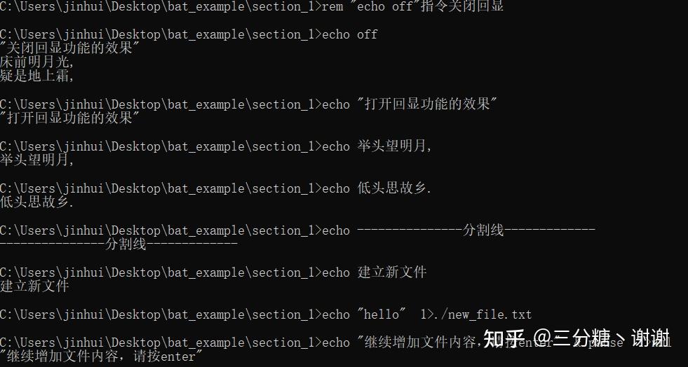ECHO指令有点类似Python语言print打印内容或者变量的值等一些作用,但是ECHO除了可以打印我们想输出的文字或者变量值的功能之外,还有一些小功能。