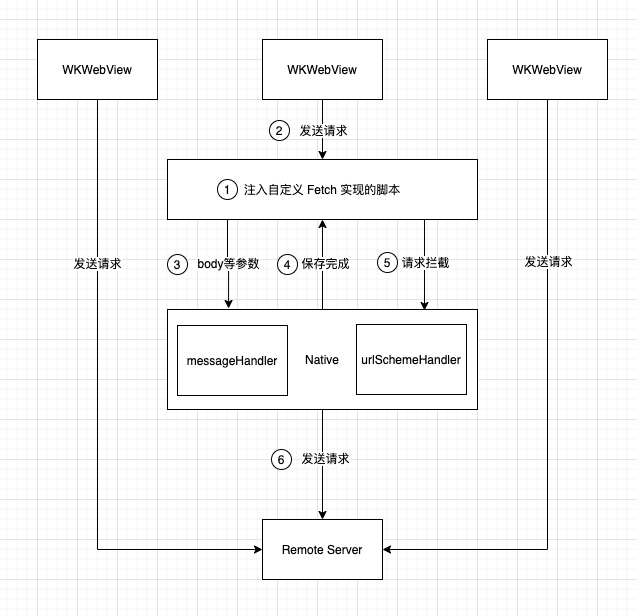 接口就能将请求体数据保存到原生应用,并且需要生成一个唯一标识符对应到具体的请求体数据以便后续取出。我们的思路是生成标准的 UUID 作为标识符然后随着请求体数据一起传递给原生应用进行保存,然后再将 UUID 标识符拼接到请求链接后,请求被