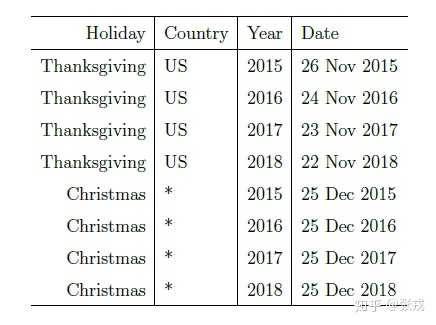 在现实环境中,除了周末,同样有很多节假日,而且不同的国家有着不同的假期。在 Prophet 里面,通过维基百科里面对各个国家的节假日的描述,hdays.py 收集了各个国家的特殊节假日。除了节假日之外,用户还可以根据自身的情况来设置必要的假期,例如 The Super Bowl,双十一等。