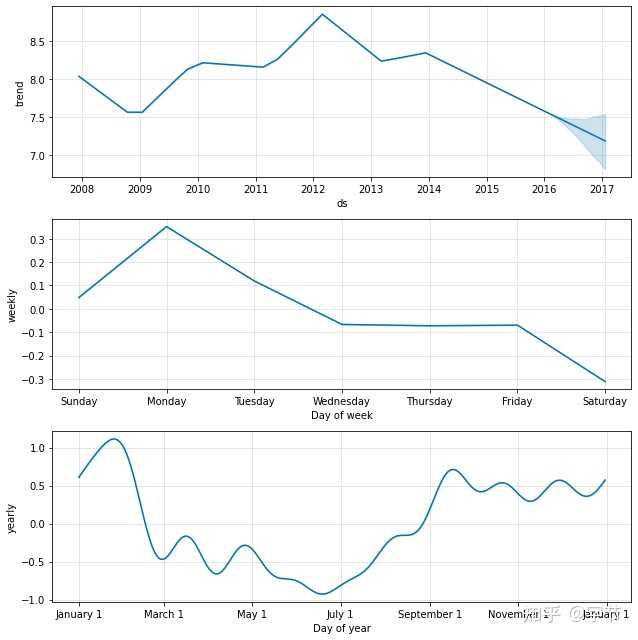 由 Facebook 开源的 Prophet 是另一个非常知名的时序预测模型。因为 API 设计比较友好 ,还附带一系列可视化和模型解释,在广大人民群众之中迅速的流行了起来。