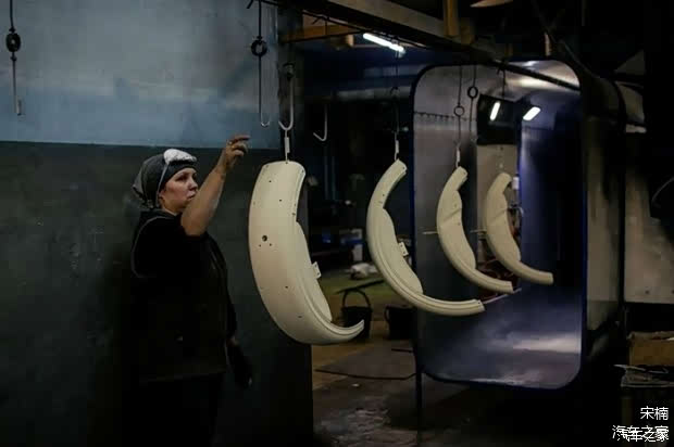 在喷漆车间,主要是女工在这里工作。她们说每天工作都很轻松,一天完成五辆摩托的喷漆工作,在苏联时期,她们每年要为10000辆摩托喷漆。