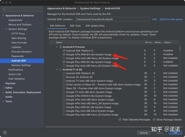 重要步骤,打开SDK Mannger,勾选 ARM System img,别选择 X86 intel就行。下载下来。ARM System Image 就是支持m1 芯片的安卓镜像。