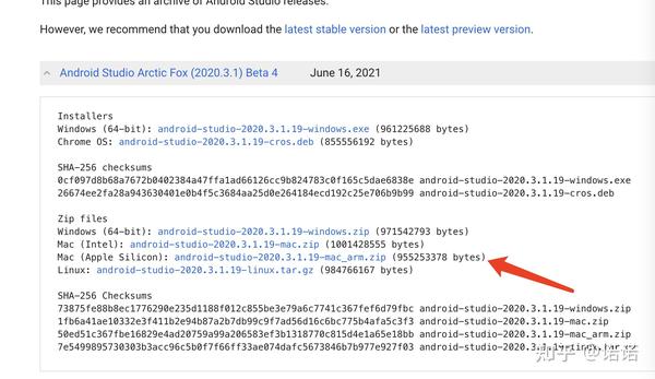 1. 下载 兼容 m1 版本的 android studio 地址: https:// developer.android.com/s tudio/archive