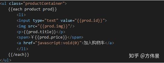 1.HTML中的代码实例,商品列表信息通过引入art-template模块进行渲染,代码如下