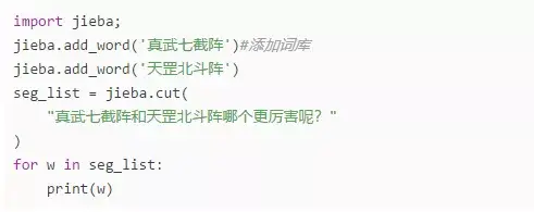 会出现真武七截阵和天罡北斗阵被分成几个词。为了改善这个现象,我们用导入词库的方法。