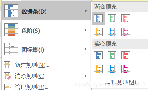 提供了数据条、色阶、图标级三种数据可视化工具。