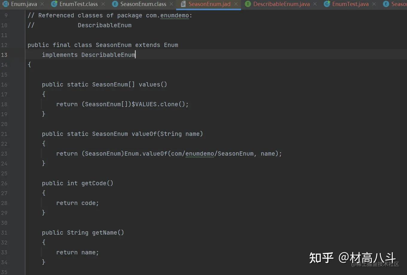 从这个文件可以看到,我们编写 SeasonEnum 类确确实实是继承了 enum类~