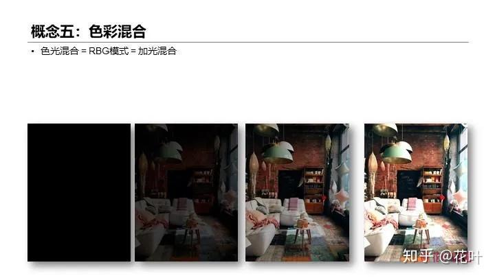 因此,色光混合又叫做加光混合 ,加法混合,因为两种颜色的光混合后,光线增多,亮度更高了,光线越多,越接近白色。