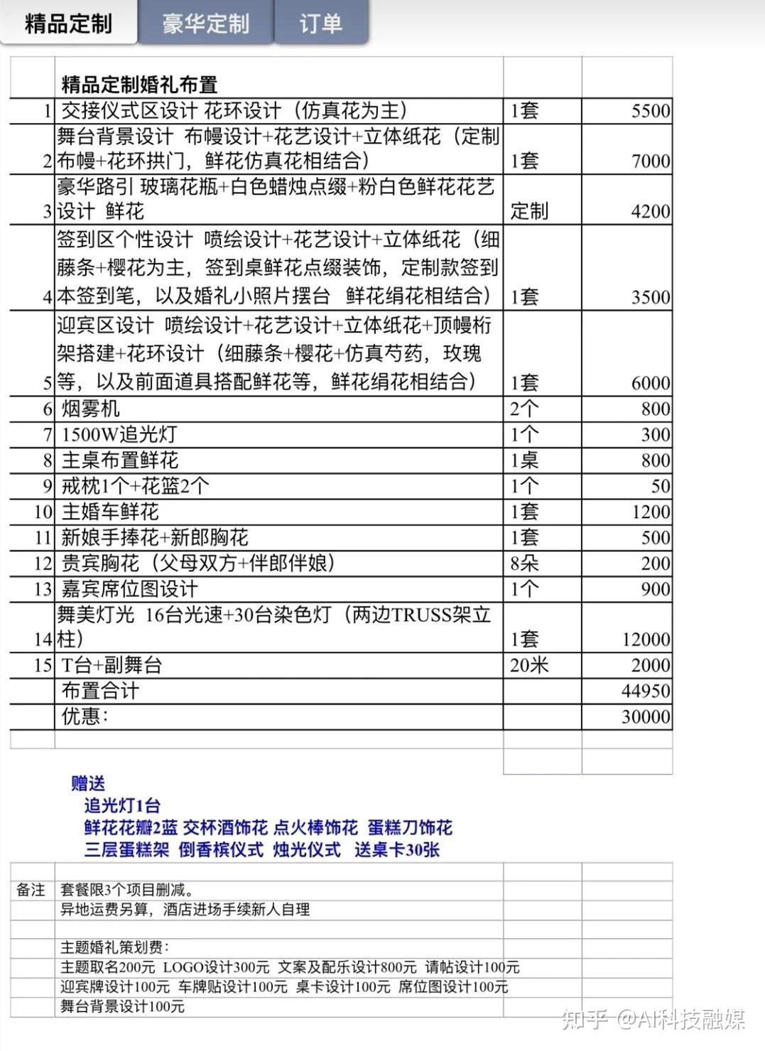 作为婚庆公司最厉害销售的“策划师”,他们会先根据进门的着装、开的车、职业等判断你的消费能力,然后就是心理价格的试探,一点一点帮新人提高预期,哪怕你进门前的预算是5万,他们能通过造梦帮你花掉10-20万,这取决于新人的底线。