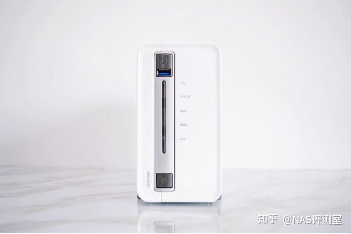 TS-212P3的外观沿用了威联通最经典的外观,整机呈现弧度设计,哑光白外壳圆润细腻,整体简约大方。
