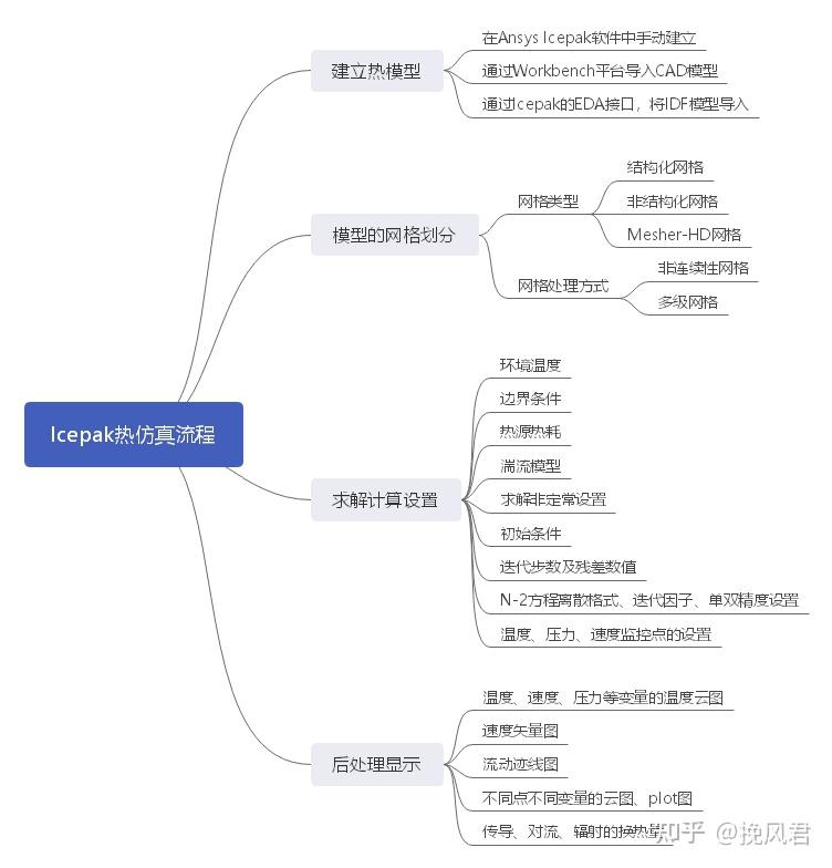 Icepak热仿真主要有建立热模型、对模型网格划分、求解计算和后处理四个步骤。
