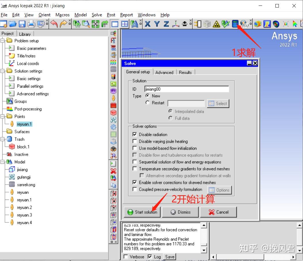 首先修改solution setting中的仿真步长(本例默认参数即可),然后设置基本参数,关闭辐射散热。