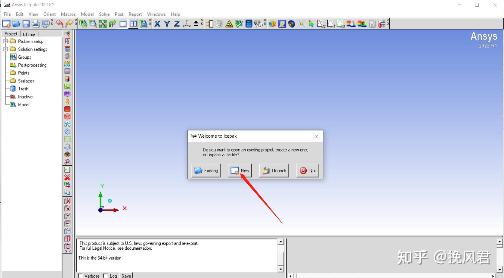 首先新建项目,建立项目的方式有两种,对于简单设计可以直接打开Icepak软件,点击“New”