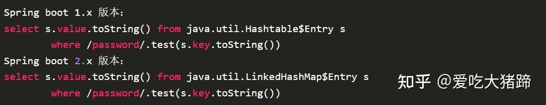 select s.value.toString() from java.util.Hashtable$Entry s where /password/.test(s.key.toString())