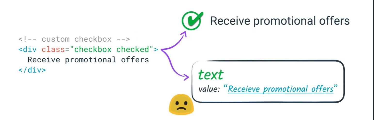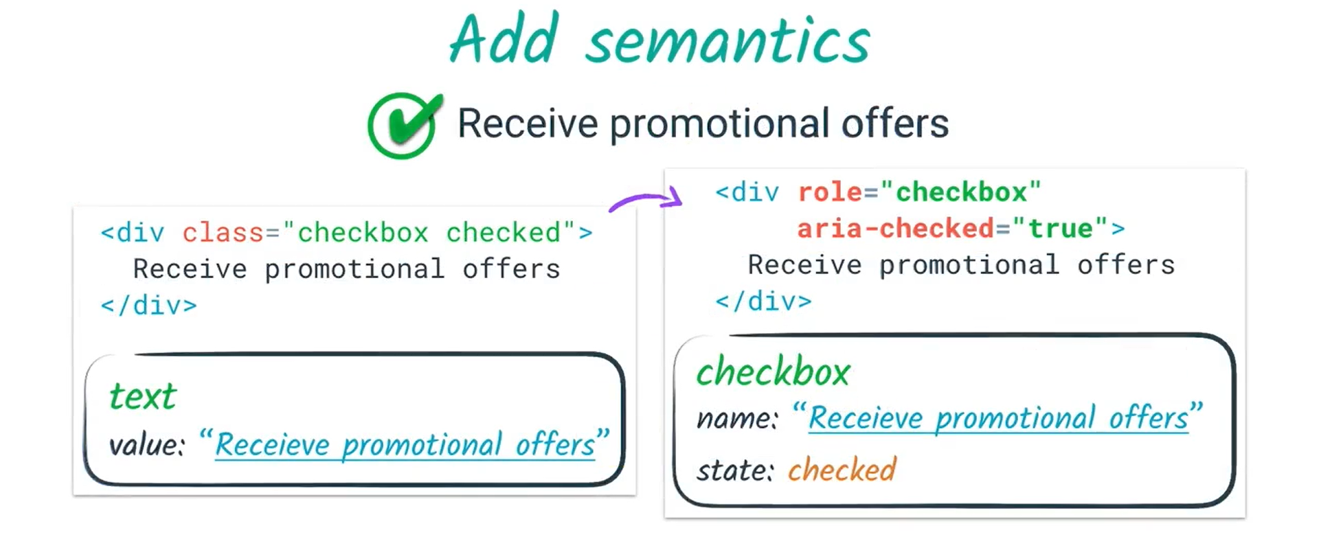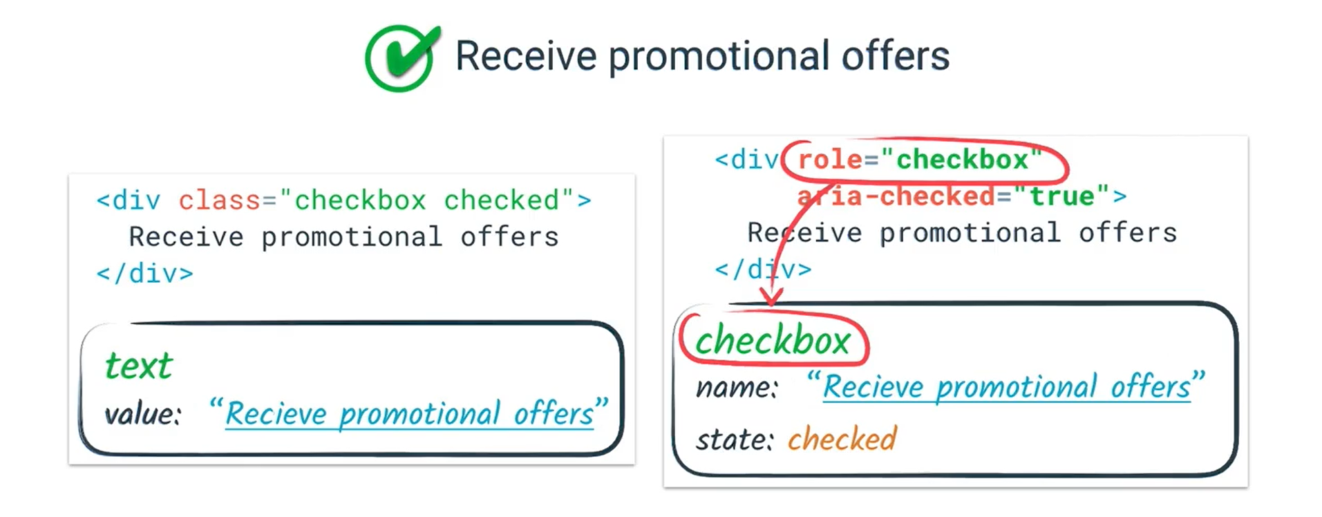 首先正如在复选框中看到的,ARIA可以 向不存在原生语义的元素添加语义 ,例如div元素,div元素明确并且没有原生语义。